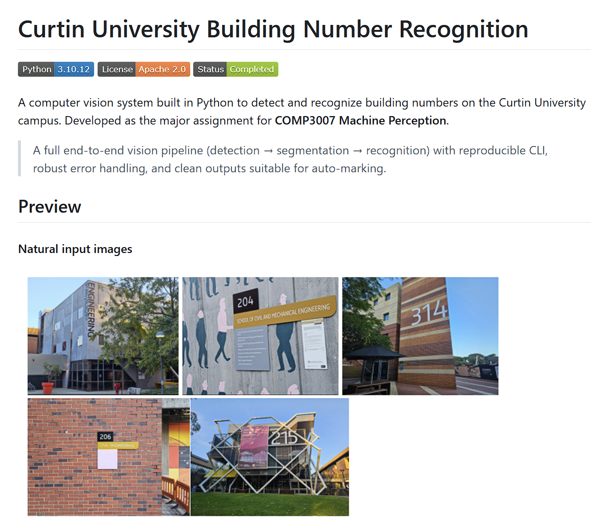 The goal of this assignment was to build an end-to-end system that can read building numbers on the Curtin campus from raw images. Instead of just classifying a whole image, the system had to: